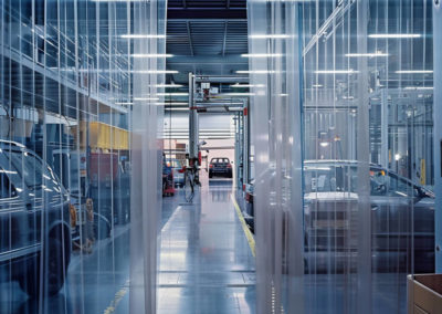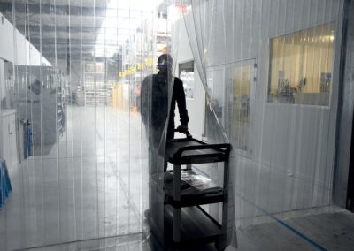 Le lamelle in PVC utilizzate per le tende industriali sono progettate per un uso intensivo in ambiente professionale. Offrono un'eccellente trasparenza, garantendo una visibilità ottimale e una circolazione sicura di persone e macchinari. La loro flessibilità consente un passaggio fluido e senza sforzo, tornando immediatamente alla loro forma iniziale. Resistenti agli urti, all’usura e agli strappi, sono perfettamente adatte alle zone ad alto traffico.