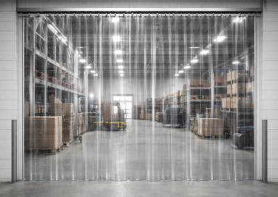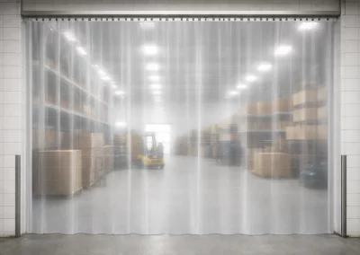 Le tende a strisce in PVC rappresentano una soluzione pratica ed efficace per separare gli spazi industriali e logistici senza ricorrere a divisori rigidi. Composte da lamelle in PVC trasparenti larghe 20 o 30 cm e con uno spessore di 2 o 3 mm, garantiscono un passaggio fluido mantenendo un'eccellente visibilità e un elevato livello di sicurezza.